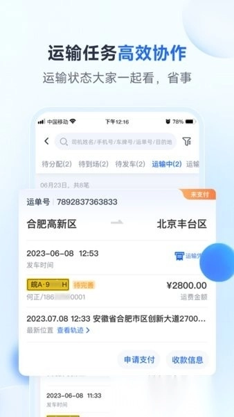 随时随地知晓货物所在位置与运输动态,提高物流任务的执行效率;
