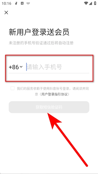 在新用户登录赠会员的页面,填写手机号后,点击领取短信验证码。
