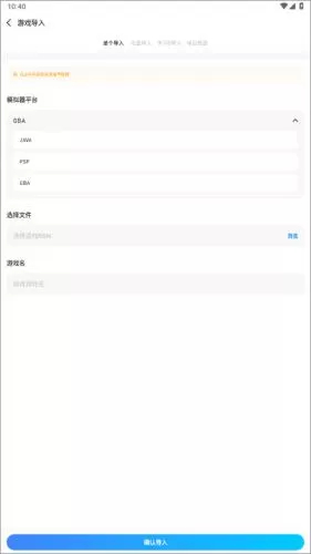 3、进入游戏导入界面。选择相关的模拟器平台,然后选择本地的游戏ROM文件。游戏名会自动识别,如果不知道游戏编号可以不用填写,或者查看页面最上方的“游戏编号查看教程”来获取。