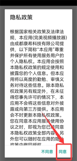打开完美视频播放器,仔细阅读隐私政策内容,随后点击同意按钮。