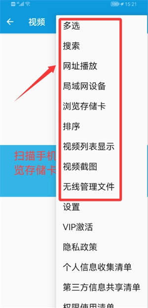 页面上可以设置提示区域,在弹出的菜单中选择浏览存储卡的功能。