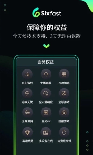 Sixfast的中文译名是六毫秒加速器,它是成都超游猫科技有限公司旗下一款专门为海外华人、留学生等在国外生活的用户打造的免费回国加速器软件。这款应用能够免费且稳定地加速国内各大视频影音平台、国服游戏、购物听歌平台以及体育赛事直播平台。此外,还准备了海量福利好礼供用户领取。同时,该软件提供全天候的专业技术客服服务,确保用户在使用过程中能及时获得帮助与支持。