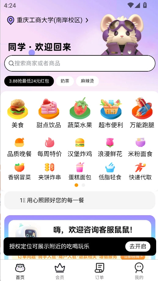 仓鼠外卖全新上线,新用户立减