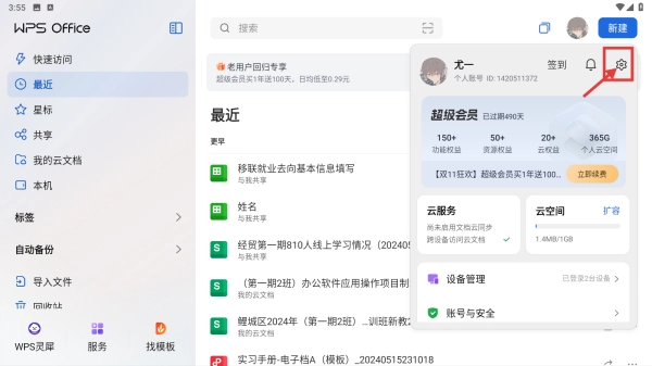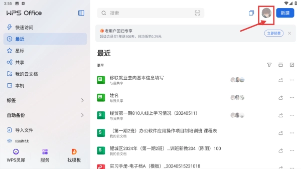 打开WPS Office应用程序,点击界面右上角的个人头像图标,此时会展开个人功能相关的菜单列表。