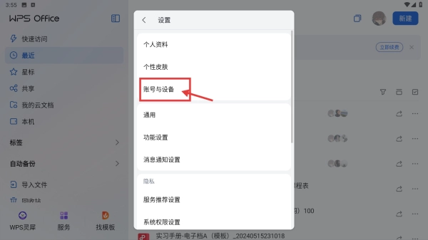 在设置界面,点击“账号与设备”选项,进入账号与安全页面。
