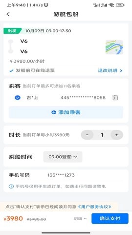 您也可以直接选择包船服务,输入旅客信息后完成包船操作并付款。