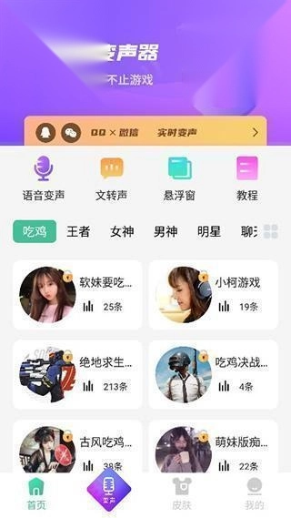 适用于王者荣耀游戏,以及和平精英变声器、游戏超人、刺激战场、刺激战场国际服、吃鸡游戏等游戏场景,同时也支持微信、QQ变声及其他聊天变声需求。