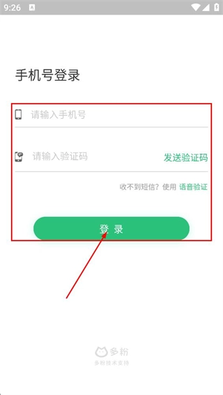 在手机号登录页面,输入手机号、填写收到的验证码,然后点击登录按钮。