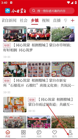 在今日蒙自的首页,点击页面底部的“我的”选项,即可进入个人中心页面。