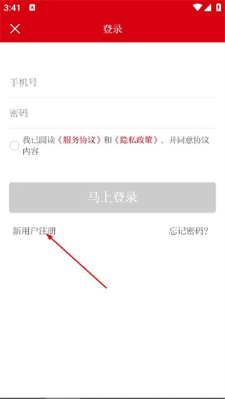 在登录页面,点击“新用户注册”按钮,就能进入注册页面。
