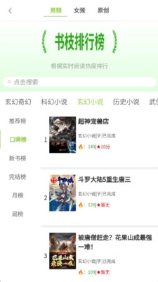 书枝依托百万级用户数据生成热门榜、新书榜、完结榜等各类榜单,通过丰富的榜单选择,助力用户发现优质好书。