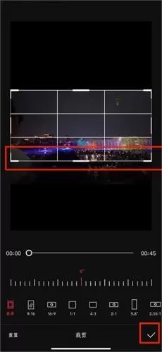 5、拖动视频边角,裁剪成自己期望的形状,点击√标识。