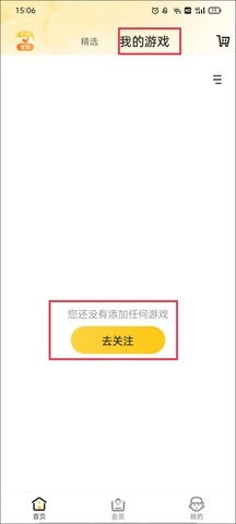 首先打开掌上道聚城,进入首页后,找到“我的游戏”选项,然后点击“去关注”按钮即可。
