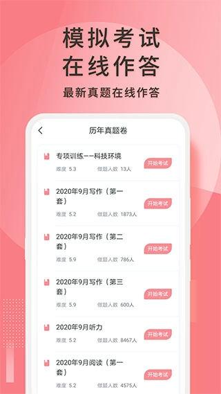 平台内设有模拟考试功能,能让用户接触到与真实考试相近的练习内容,从而实现快速提升。