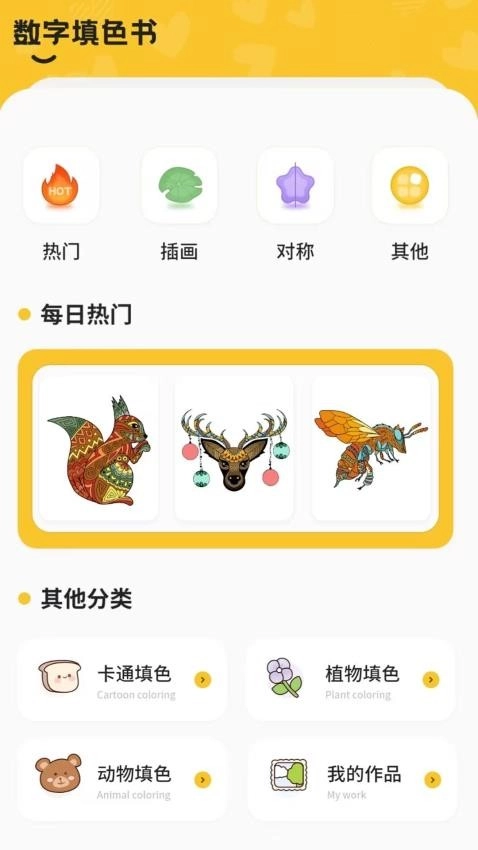 丰富多样的图画种类,包括数字涂色和自由涂色两种模式,满足不同用户的喜好。