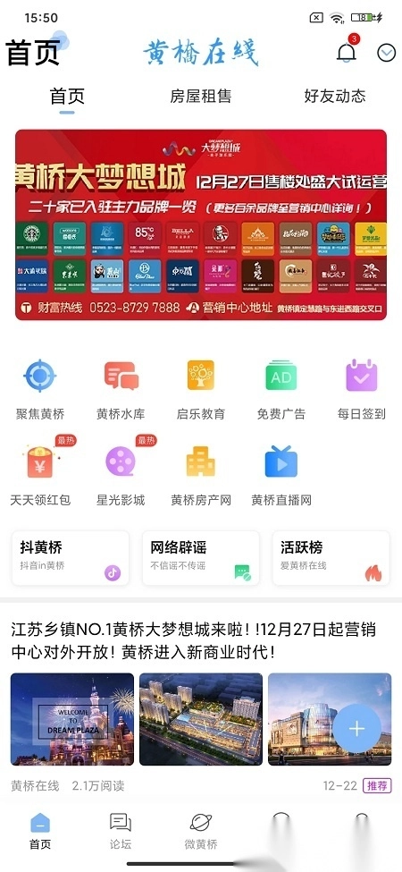 黄桥在线客户端是面向江苏省泰兴市黄桥地区的生活消费社交平台,已收获二十多万本地网友的喜爱。在这里,大家能畅快交流黄桥新鲜事,分享生活点滴,展现个人魅力,参与各类线上活动,内容涵盖日常消费的方方面面。我们致力于为黄桥居民打造便捷实用的社交空间,提供贴心的本地生活指引,若想感受本地精彩生活,打开黄桥在线就好。