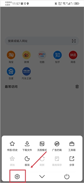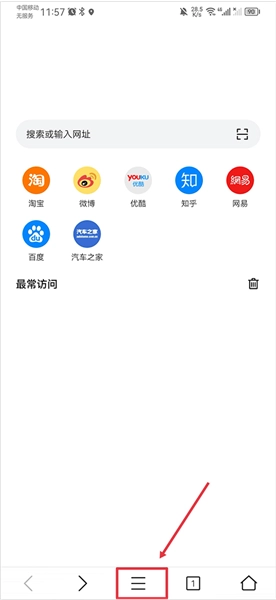 在首页点击任务栏的三横线图标后,再点击书签/历史功能选项。