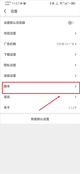 进入后设置功能界面,点击脚本功能