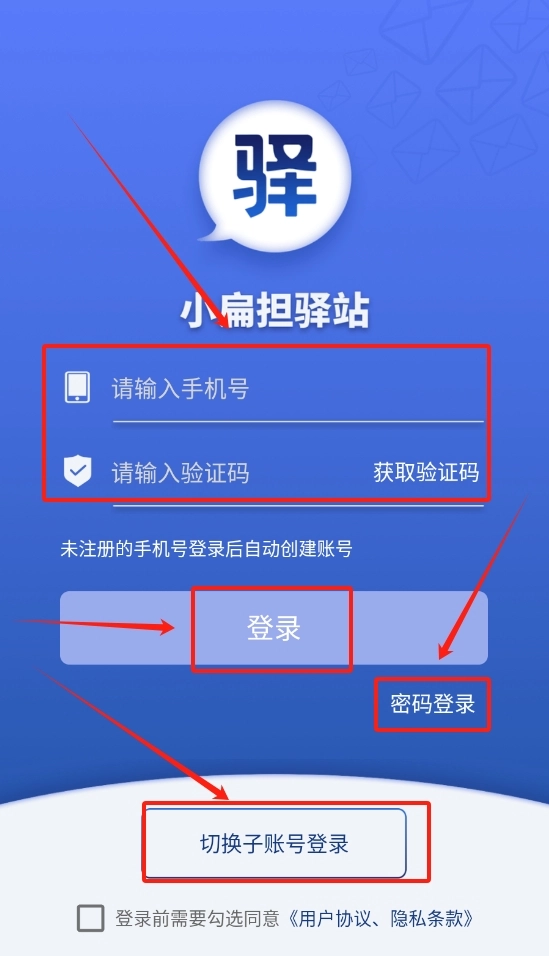 开通账户需通过手机号验证登录完成安装注册流程,并进行驿站基础信息认证。