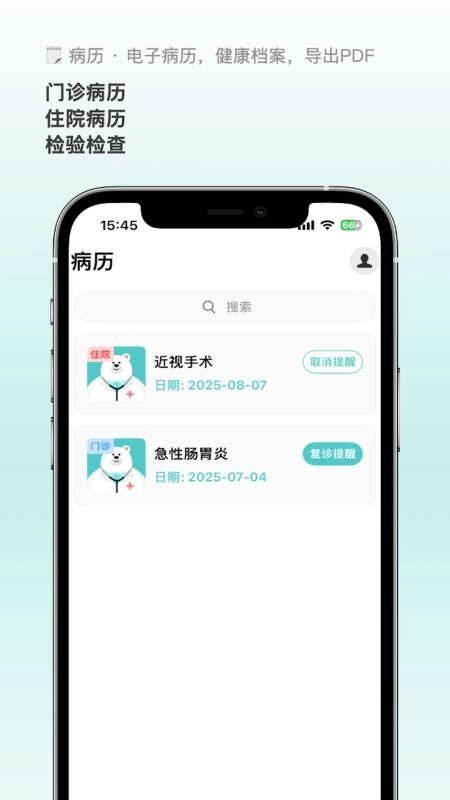 用户能够快速添加个人病历,借助软件即可创建自己的健康档案。