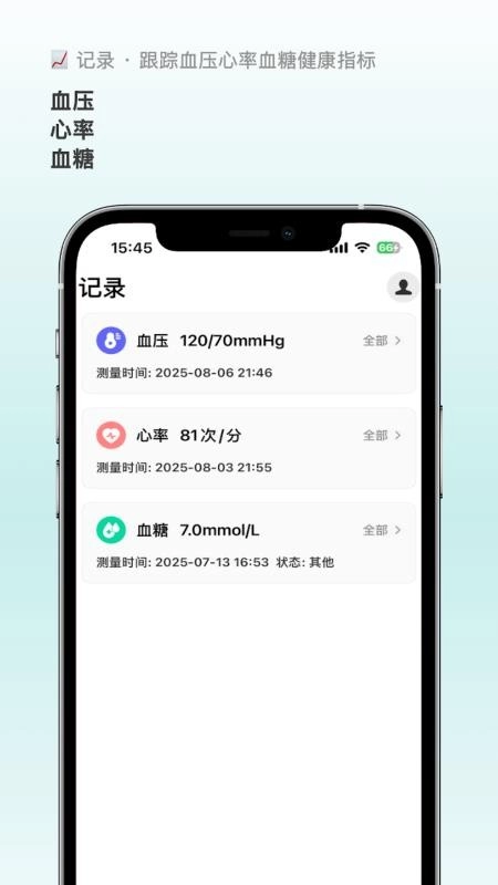 记录自己的血压、血糖、心率等数据,有助于你了解自身的健康指标。