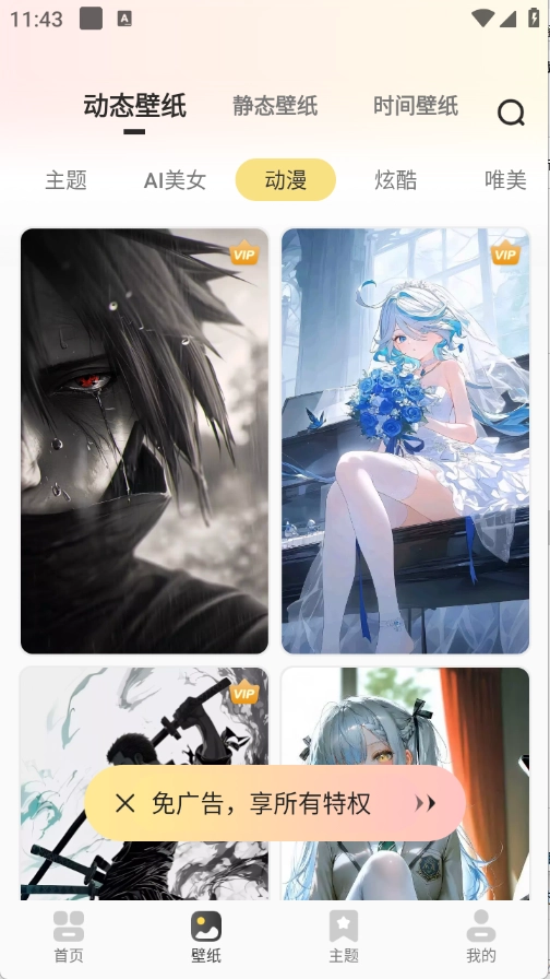 进入页面后,底部栏包含组件、壁纸和主题等类别。