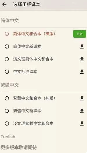 点击需要使用的译本右侧图标,就可以该译本。完毕后,点击该译本就可以阅读了。如果想删除已的译本,则点击该译本左侧的圆圈图标。