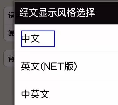 进入圣经经文界面后,在经文上方有一个长方框按钮,标有当前版本名称(默认是新标点和合本),点击这个按钮就进入了圣经译本界面。