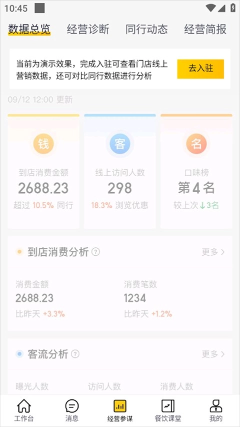 美团商家版具备数据总览、经营诊断及同行动态信息的查看功能,能依托这些数据为商家提供经营参谋服务。