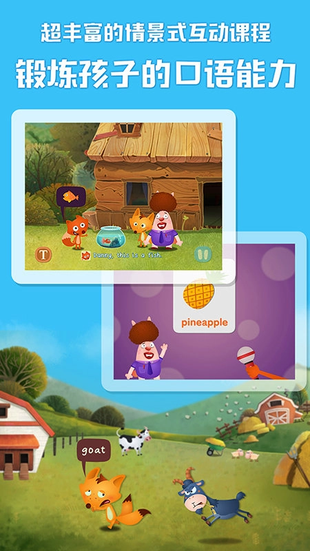 进入情境课程后,按照画面给出的提示开展互动,能够提升听说能力,同时加深对单词和场景的理解。