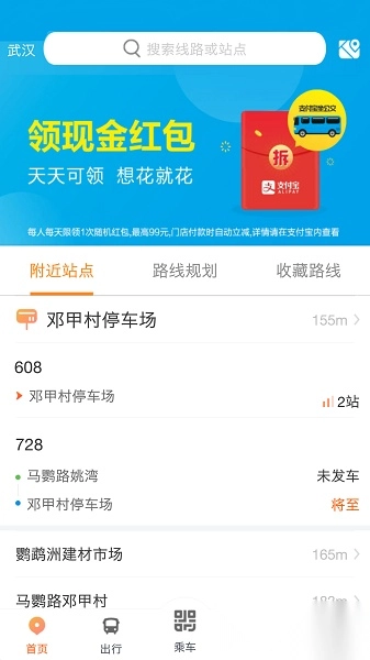 自动定位并推荐周边站点及对应公交线路;