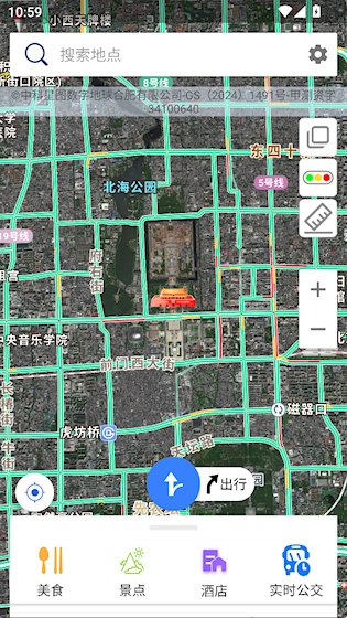 地图视角灵活可调,支持普通视图、卫星图与实时路况三种模式自由切换,能适配不同使用场景和个人偏好。