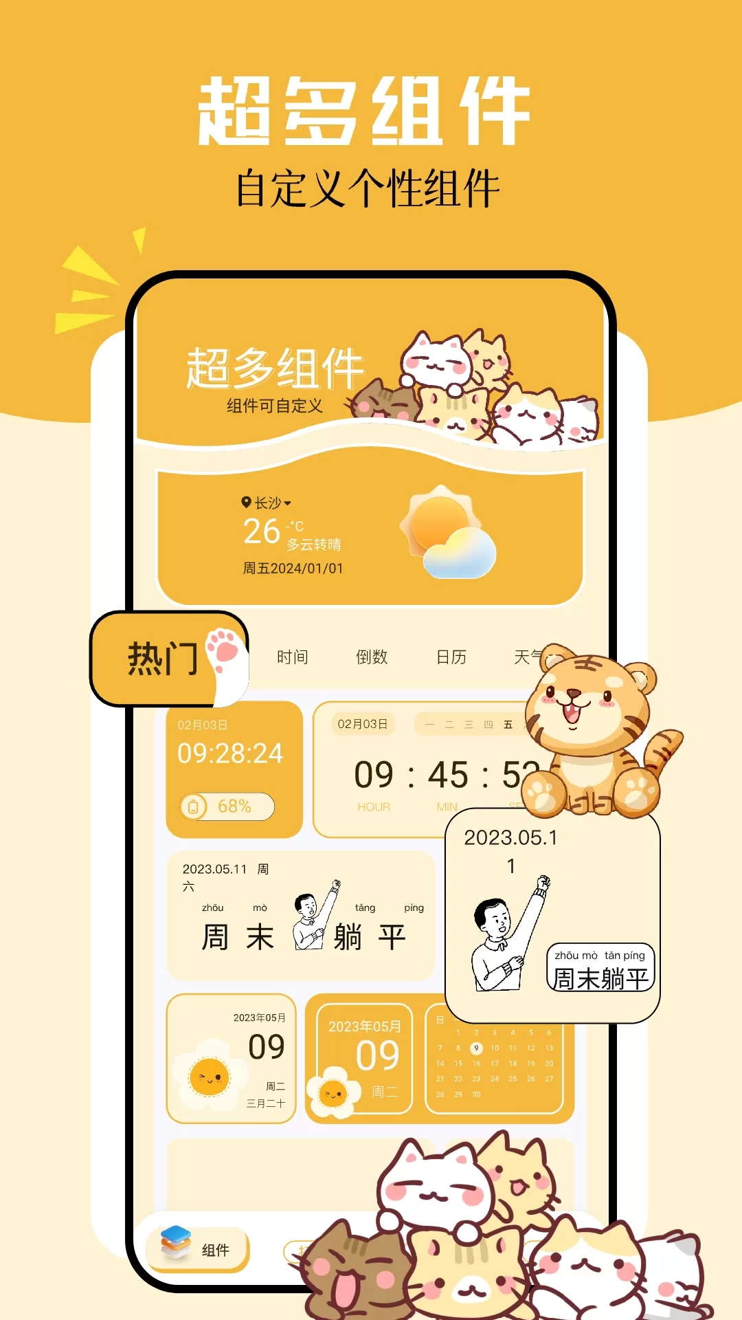 1、丰富组件类型:包含倒计时纪念日、日历、天气等多种组件,满足用户对桌面功能的多样化需求,不仅美观还兼具实用性,提升使用便捷度。