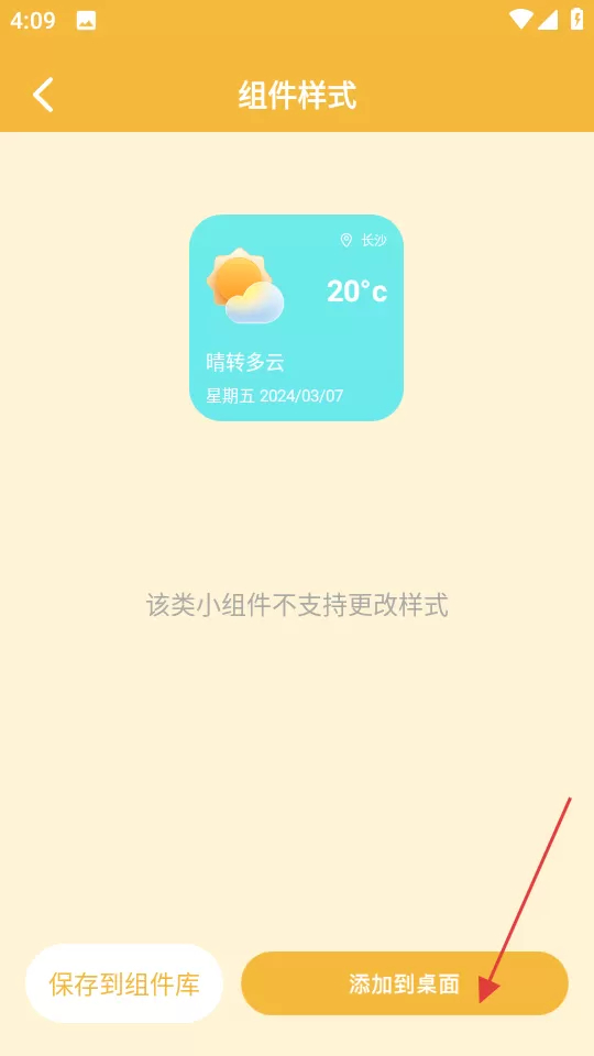 4、倘若组件不支持样式更改,点击“添加到桌面”按钮,就能把组件添加至桌面。