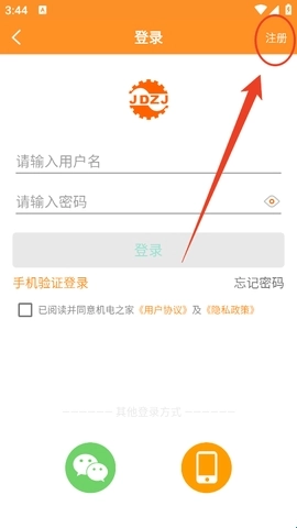 接着点击登录页右上角的“注册”。