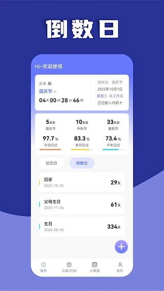 3、纪念日管理:针对生日、纪念日等重要日子,设置倒数提醒后可实时掌握剩余时间,避免遗漏。