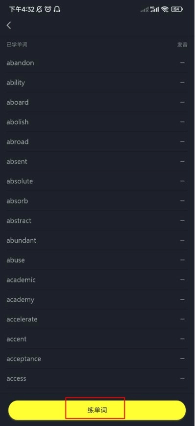 在练单词页面底部,点击练单词按钮即可