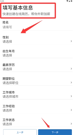 4、若以求职者身份进入,填写个人基本资料后提交并继续。