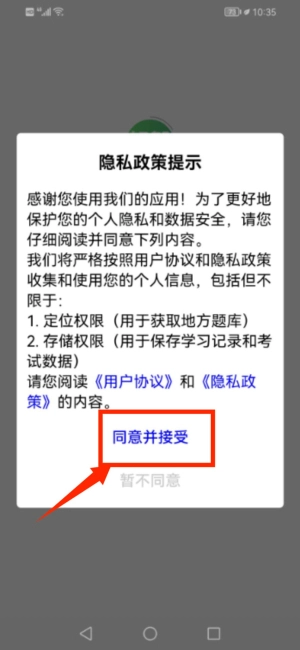 1. 当首次启动应用时,请在隐私政策提示的弹窗中点击同意并接受。