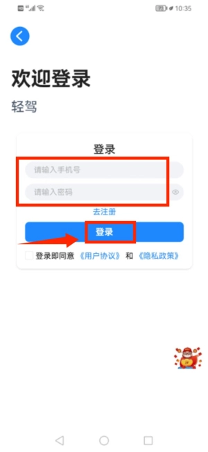 2、输入手机号及密码并勾选协议,完成登录操作。
