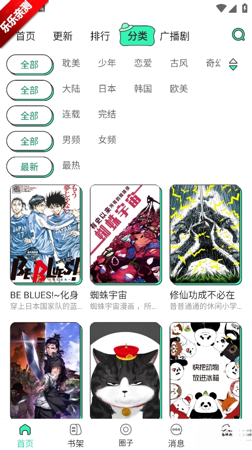 青漫漫画,这可是一个汇聚了海量优质漫画资源的阅读宝藏平台!它以清新简约的界面设计,搭配上丝滑流畅的阅读体验,成为漫迷们的心头好。这里漫画类型丰富多样,无论你钟情热血冒险,还是偏爱浪漫言情,亦或是喜欢悬疑烧脑,都能找到心仪之作。而且,平台借助智能推荐功能,能够精准契合用户的喜好,让每一位漫迷无论何时何地,都能尽情享受追番的快乐,开启沉浸式的漫画阅读全新体验。感兴趣的小伙伴们,别再犹豫,赶紧来体验一番吧!