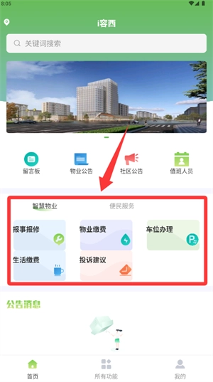 2、整合物业服务与生活缴费功能,实现物业费、水电燃气费等日常费用的统一缴纳入口。