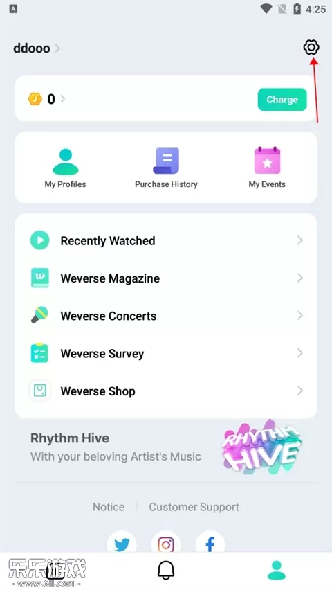 1、打开6ll的weverse软件。点击右下角我的,然后点击右上角的设置
