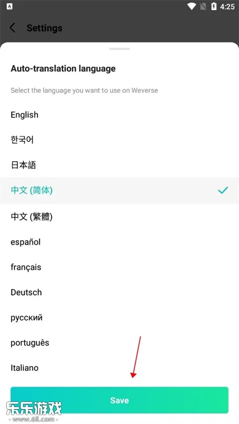 3、选取简体中文,点击页面最下方正中间的“Save”进行保存。