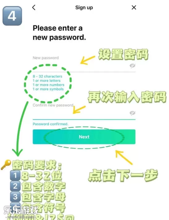 4设置密码并再次确认(注意密码的要求)Next