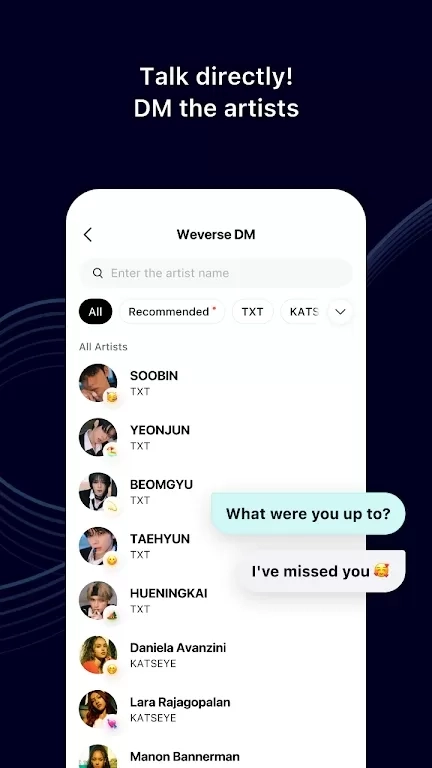 co.benx.weverse可以让你在线就能追星,用户需要登录才能体验里面的全部功能,这里有非常多明星入驻,每天都会更新很多动态,你可以将喜欢的明星账号关注起来,并且还能发送私信。