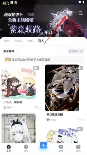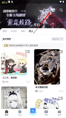 3、在社区里,用户能够交流创作,分享游戏体验、玩法心得及其他动态。比如创作同人插画、漫画或者同人文来分享。帖子发布格式十分自由,图文、纯文字均可,甚至表情包也能直接用(社区内已备好大量表情包素材)。
