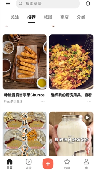 在首页能看到推荐和热门菜谱,你可以滑动屏幕或者通过搜索栏来浏览各类菜谱,像早餐、午餐、晚餐或者甜点都能找到。
