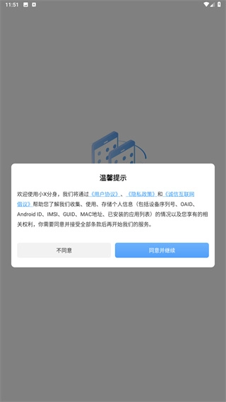 阅读完用户协议与隐私政策后,点击“同意并继续”按钮,就能进入软件。