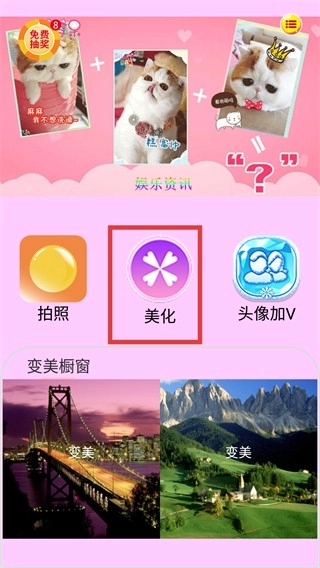 打开软件首页后,找到并点击【美化】功能按钮,即可进入图片美化的前期选择流程,为编辑目标图片做好准备。